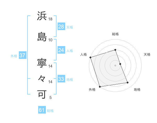 浜島 寧々可さんを姓名の画数から五運を鑑定