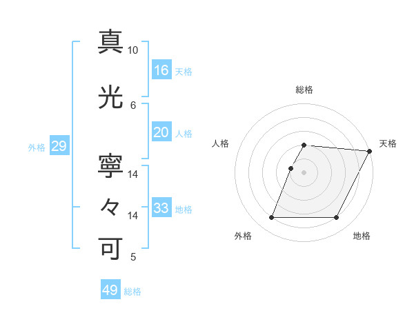 真光 寧々可さんを姓名の画数から五運を鑑定