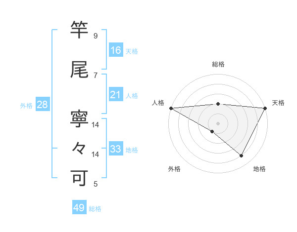 竿尾 寧々可さんの総格は49画の2点