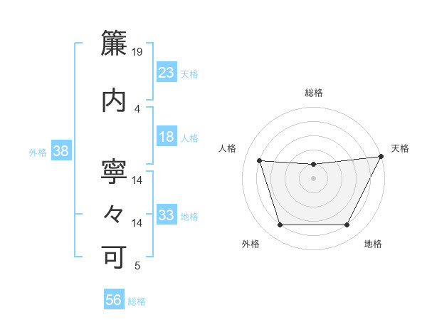 簾内 寧々可さんの外格は38画の4点!