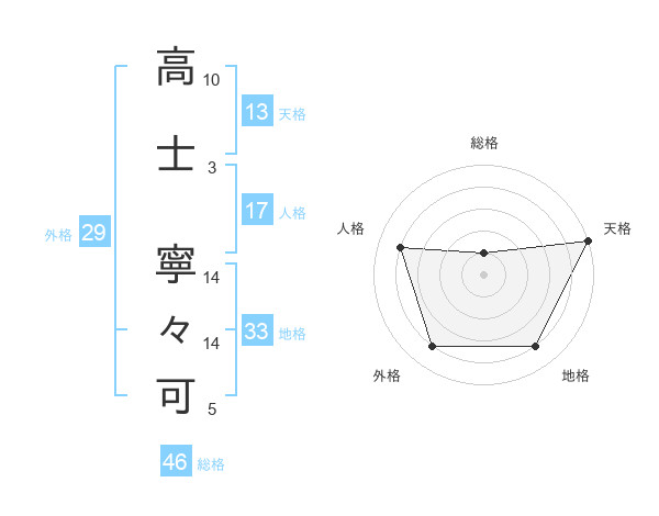 高士 寧々可さんの天格は13画の5点!