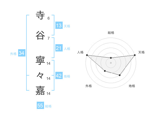 寺谷 寧々嘉さんを姓名の画数から五運を鑑定