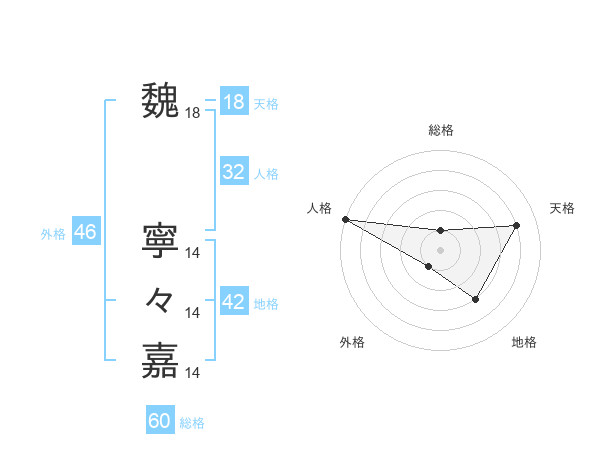 魏 寧々嘉さんを姓名の画数から五運を鑑定