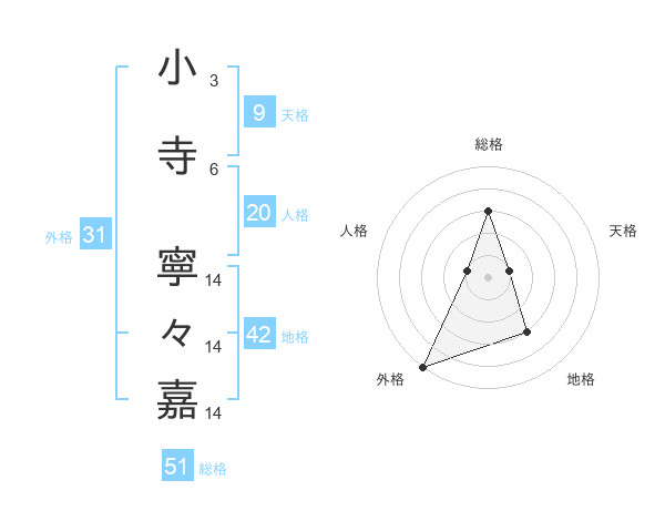 小寺 寧々嘉さんの総格は51画の3点!