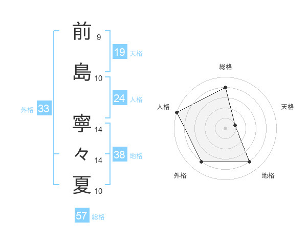 前島 寧々夏さんを姓名の画数から五運を鑑定