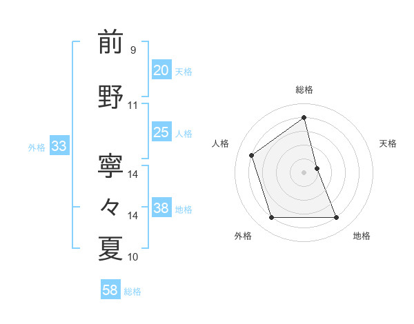 前野 寧々夏さんを姓名の画数から五運を鑑定