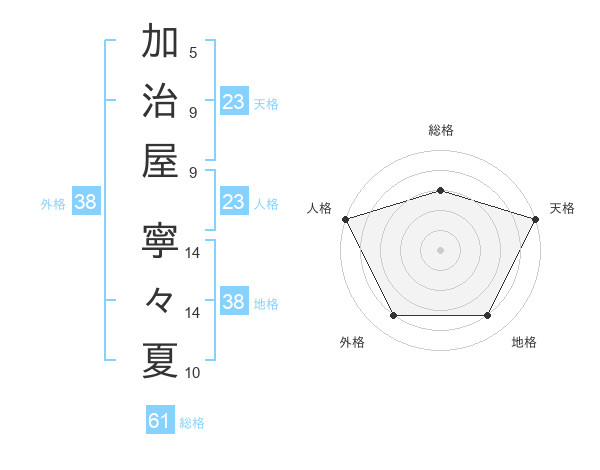 加治屋 寧々夏さんを姓名の画数から五運を鑑定