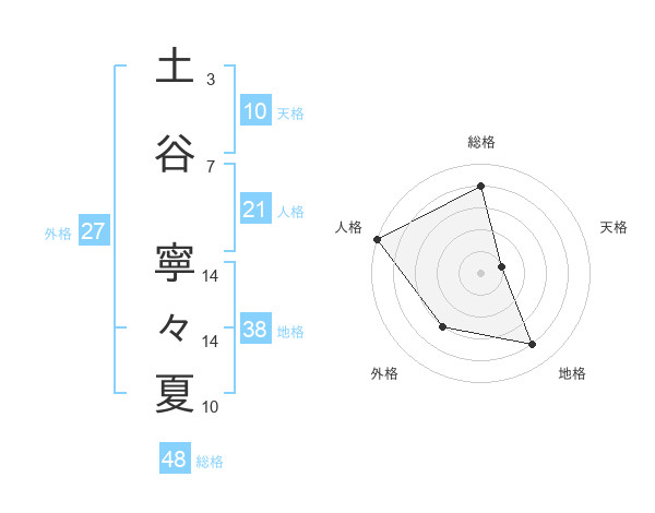 土谷 寧々夏さんを姓名の画数から五運を鑑定