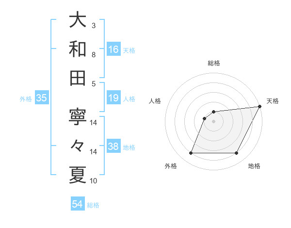 大和田 寧々夏さんを姓名の画数から五運を鑑定