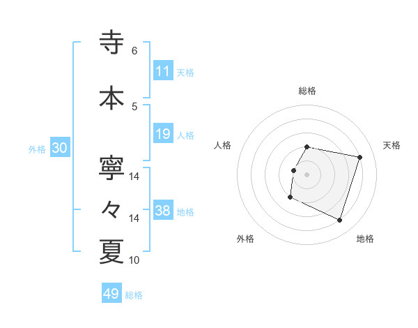寺本 寧々夏さんの総格は49画の2点!