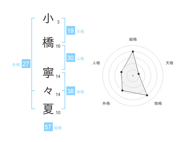 小橋 寧々夏さんを姓名の画数から五運を鑑定