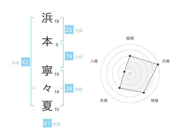 浜本 寧々夏さんを姓名の画数から五運を鑑定