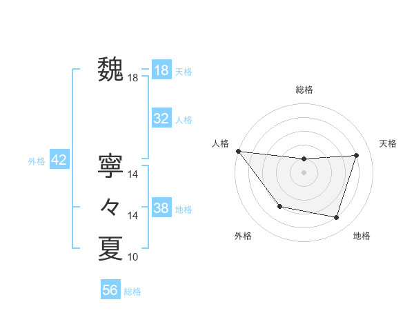 魏 寧々夏さんを姓名の画数から五運を鑑定