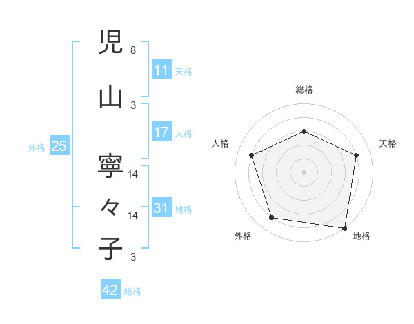 児山 寧々子さんを姓名の画数から五運を鑑定