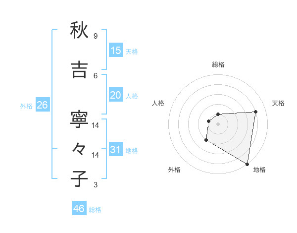 秋吉 寧々子さんを姓名の画数から五運を鑑定