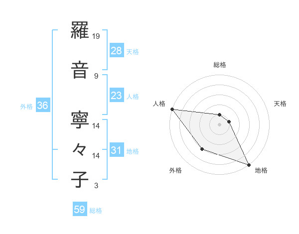 羅音 寧々子さんを姓名の画数から五運を鑑定