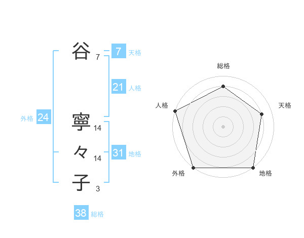 谷 寧々子さんの総格は38画の4点!
