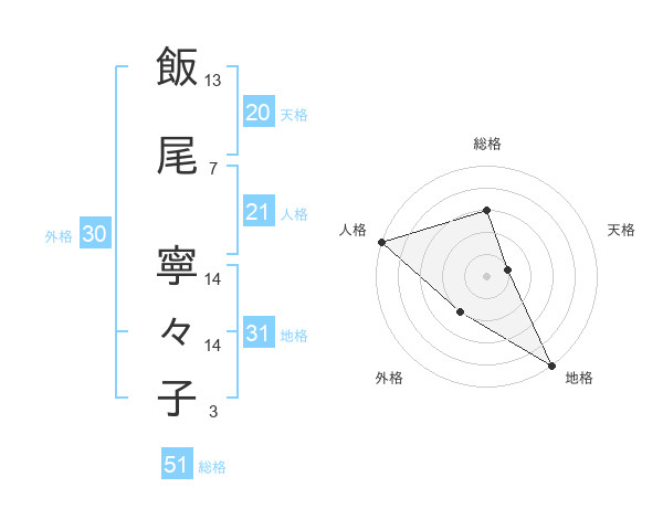 飯尾 寧々子さんの総格は51画の3点!