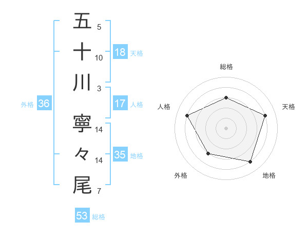 五十川 寧々尾さんの総格は53画の3点!