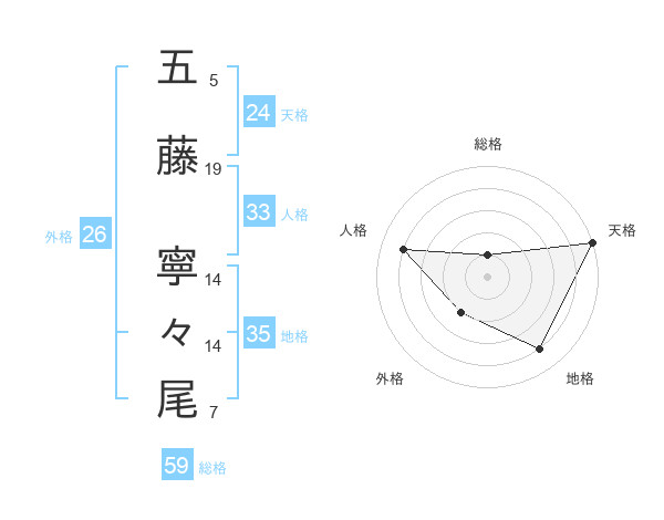 五藤 寧々尾さんの総格は59画の1点!