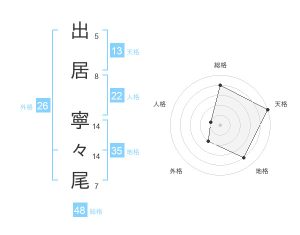 出居 寧々尾さんの天格は13画の5点!
