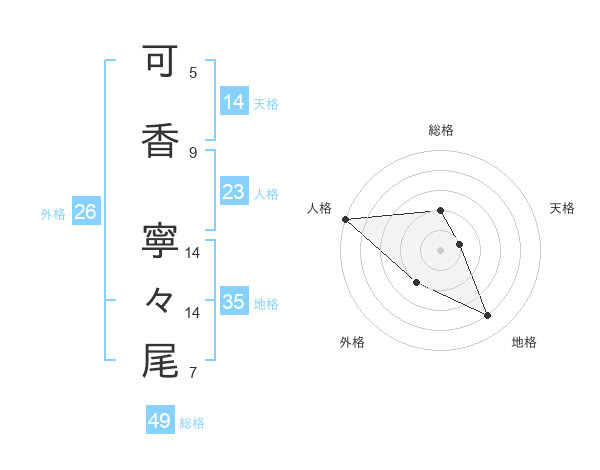 可香 寧々尾さんを姓名の画数から五運を鑑定