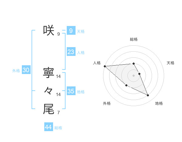 咲 寧々尾さんを姓名の画数から五運を鑑定