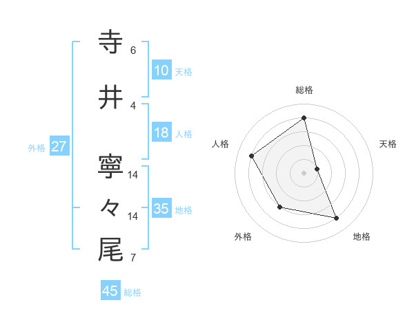 寺井 寧々尾さんの総格は45画の4点!