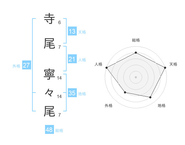 寺尾 寧々尾さんの天格は13画の5点!