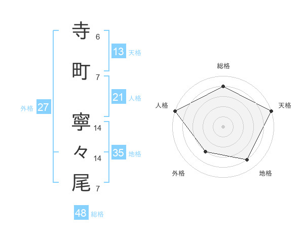 寺町 寧々尾さんの天格は13画の5点!