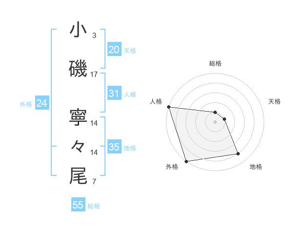 小磯 寧々尾さんを姓名の画数から五運を鑑定
