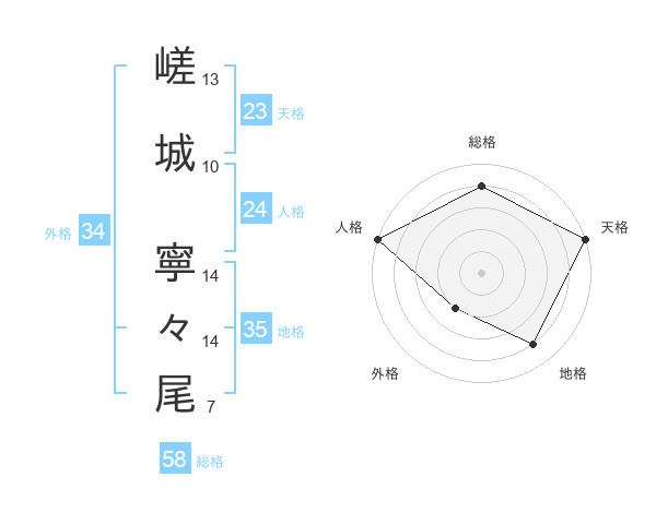 嵯城 寧々尾さんを姓名の画数から五運を鑑定