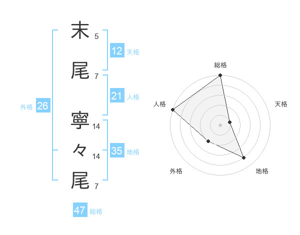 末尾 寧々尾さんを姓名の画数から五運を鑑定