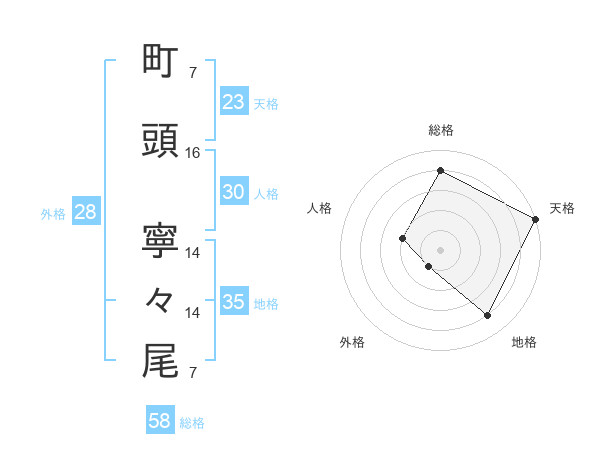 町頭 寧々尾さんの総格は58画の4点!