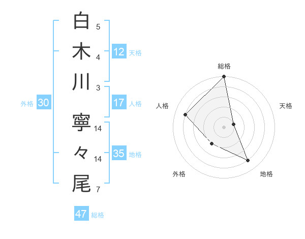 白木川 寧々尾さんを姓名の画数から五運を鑑定