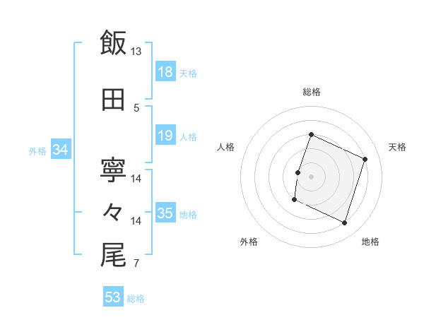 飯田 寧々尾さんの総格は53画の3点!