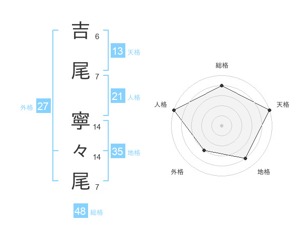 吉尾 寧々尾さんの天格は13画の5点!