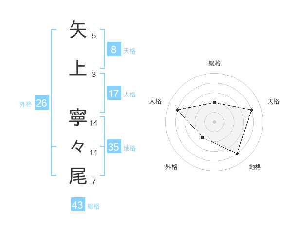 矢上 寧々尾さんの総格は43画の2点!