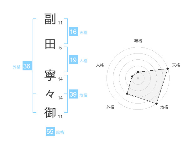 副田 寧々御さんを姓名の画数から五運を鑑定