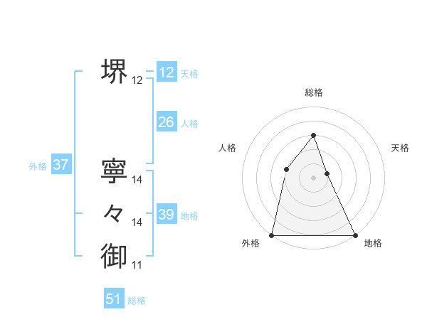 堺 寧々御さんの総格は51画の3点!