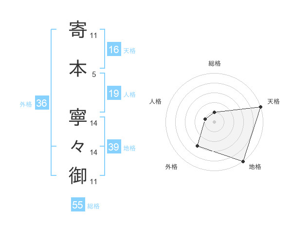 寄本 寧々御さんを姓名の画数から五運を鑑定