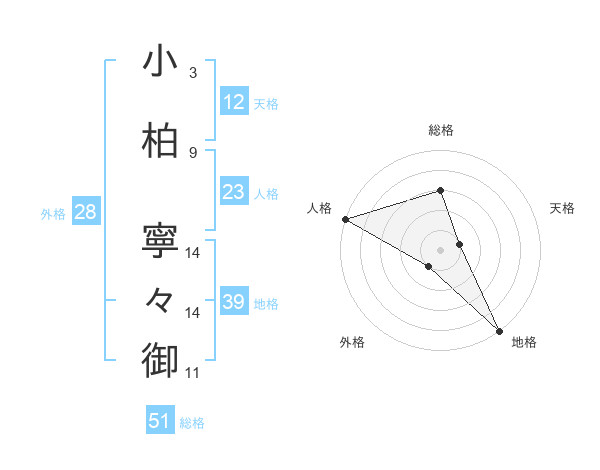 小柏 寧々御さんを姓名の画数から五運を鑑定