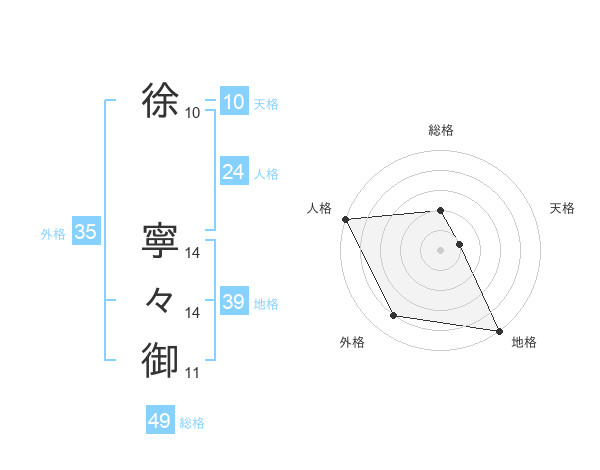 徐 寧々御さんの総格は49画の2点!