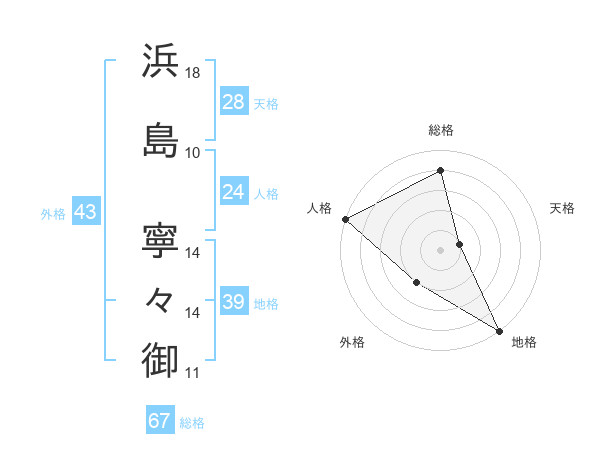 浜島 寧々御さんを姓名の画数から五運を鑑定
