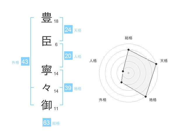 豊臣 寧々御さんの総格は63画の4点!