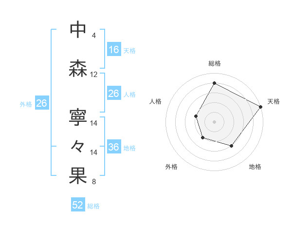 中森 寧々果さんの総格は52画の4点!