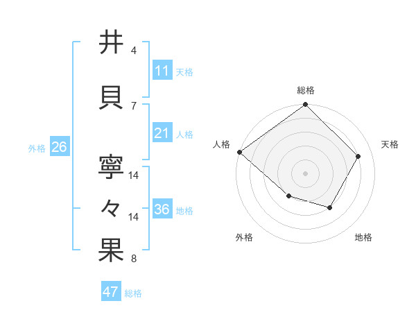 井貝 寧々果さんの総格は47画の5点!