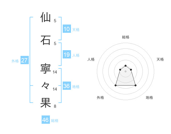 仙石 寧々果さんの総格は46画の1点!
