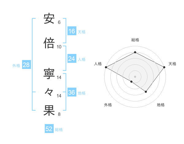 安倍 寧々果さんを姓名の画数から五運を鑑定