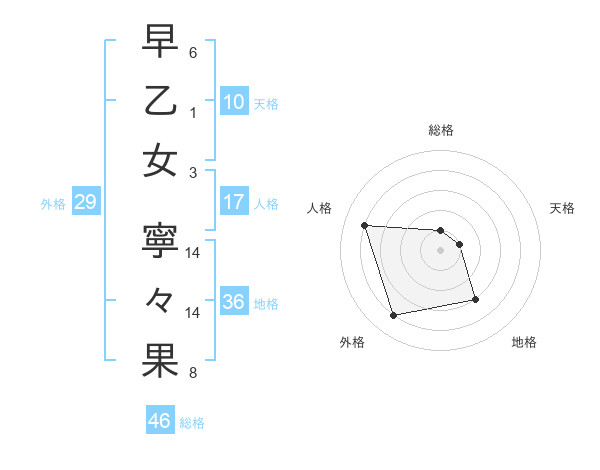 早乙女 寧々果さんを姓名の画数から五運を鑑定